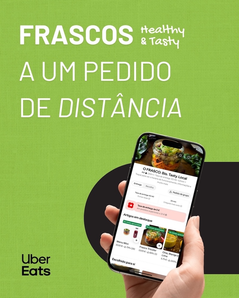 Frascos Healthy & Tasty à distância de um clique, em exclusivo no Uber Eats. Encomende online e receba refeições frescas, saudáveis e cheias de sabor.